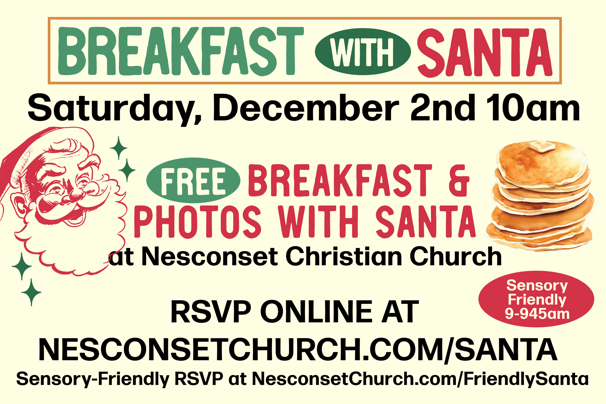 As the holiday season approaches, we at Nesconset Christian Church are excited to extend a warm invitation to you, your family, and your friends to join us for a heartwarming and joyful event: "Breakfast with Santa!"