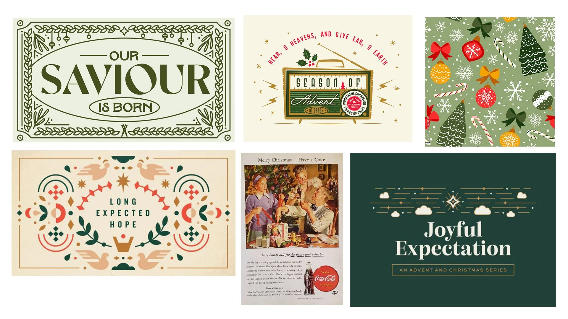 For the second rendition of Christmas at NCC, my aim was to encapsulate an elegant nostalgic atmosphere, blending simplicity with a distinctive sense of nostalgia. I desired for this design to be simple, not flashy, yet contemporary and fun. To achieve this, I curated a mood board drawing inspiration from various graphics and a refined color palette gathered during the research phase.