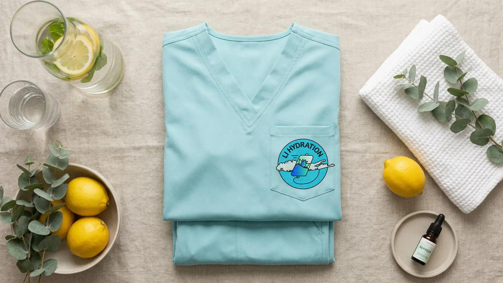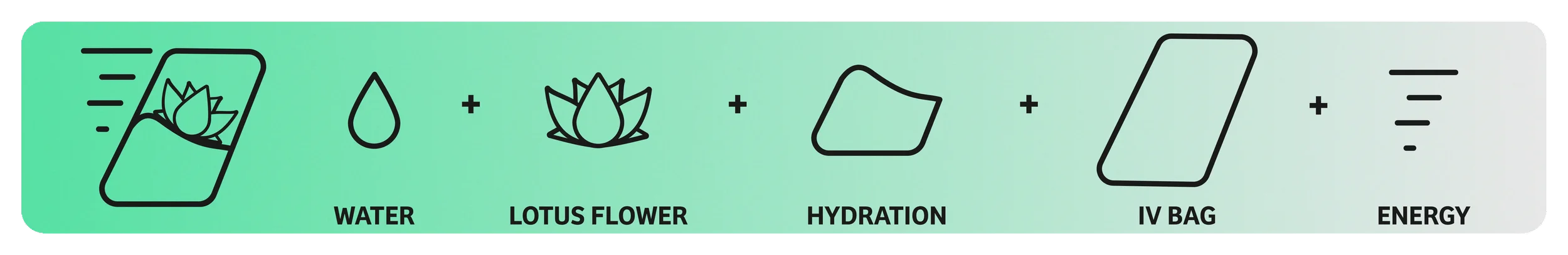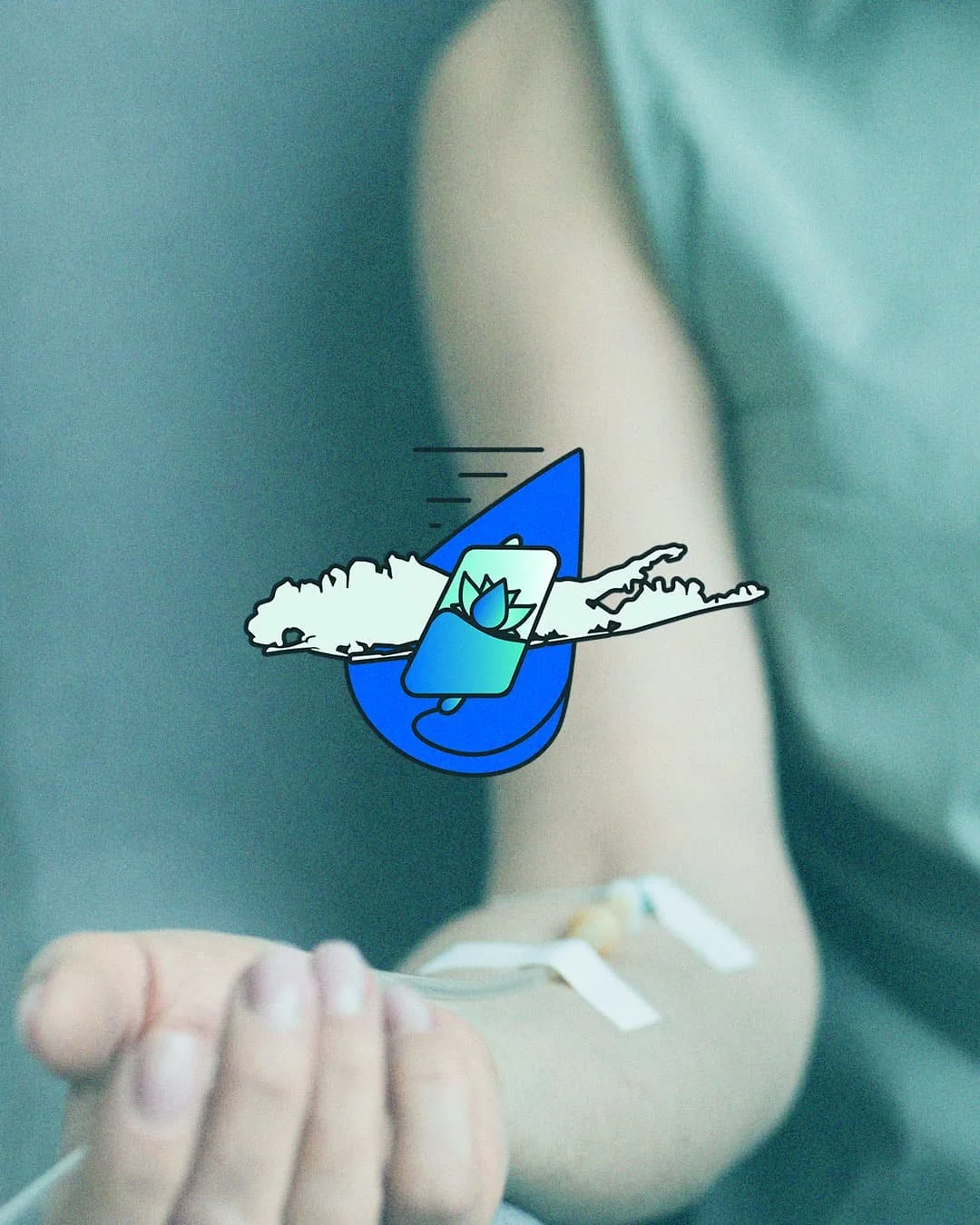 The form brings together a water droplet and a lotus-inspired shape, representing hydration, restoration, and care. A subtle tilt in the mark draws from the shape of an IV bag, introducing a sense of movement and energy. Together, these elements create a visual language that feels fluid, grounded, and deeply connected to the experience behind the brand.